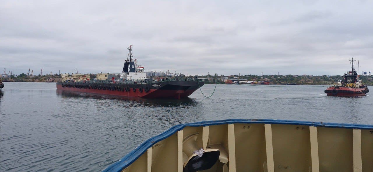 02.10.2025 – була здійснена буксирна операція по перегону стоянкового нафтоналивного судна «ОДЕССОС» з акваторії п. Чорноморська до п. Південний.